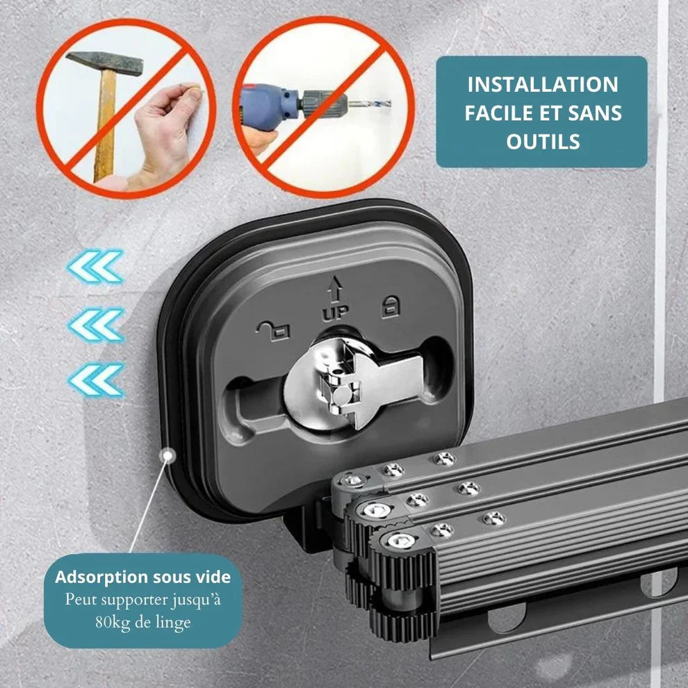 L'EspaceCloth Sèche-Tout Mural est idéal pour les appartements, les balcons et les petites buanderies, il se replie discrètement contre le mur lorsqu'on ne l'utilise pas.